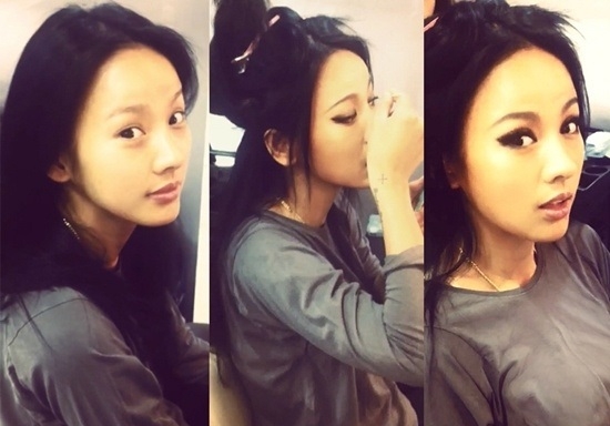 The photo shows Lee Hyori from before makeup slowing turning into her beautiful self through full make up.