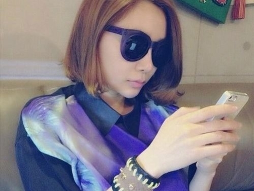 In the photo, the singer is wearing big sunglasses and holding her cell phone while sitting on a chair. She is flaunting her fashion sense with fashionable outfit and bracelet. What's the most eye catching is her sharp jaw line and her shining beauty.
