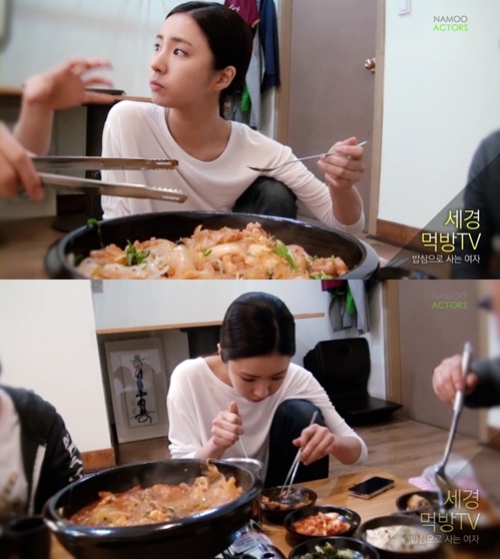 The most eye-catching of the video was the actress' eating scene. In the video, Shin Se-Kyung was stretching her body while waiting for her food. As Korean spicy chicken stew arrived, she sat down right away, and started to gobble the food.