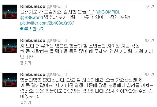 On June 11, the singer tweeted, "It's DJ Bum. It's time for radio broadcast. I don't think I can make it to 'Gayo Plaza' today. Due to my excessive passion, I made many of you get worried."