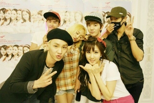 In the photo, Seohyun is posing friendly with KARA's Nicole, SHINee's Key, INFINITE's Sungyeol, Hoya and Sungjong.