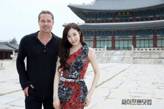 On June 12, Tiffany posted a photo on her Twitter and wrote, "With Brad Pitt! Unforgettable moments!"