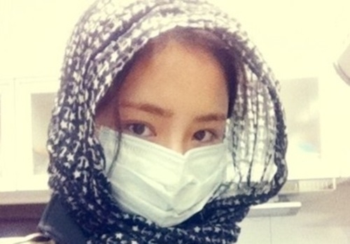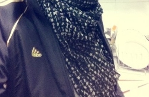 In the picture, the actress has covered all of her body in spite of the hot weather, looking at the camera. She is wearing a mask, a scarf and even a track jacket. It seems like she found her own way to avoid splatter while cooking bacon.