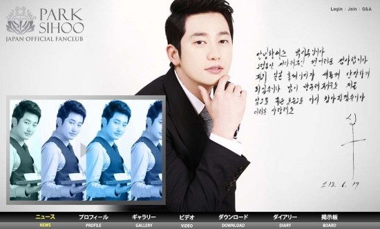 The actor wrote, "Hello, this is Park Si-Hoo. I'm grateful to fans who have waited for a long time. My Japanese homepage is newly remodeled so please visit often and I'll meet you again. I love you, everyone."