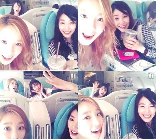 Girls' Generation's Taeyeon revealed a video of SNSD members in the airplane.
