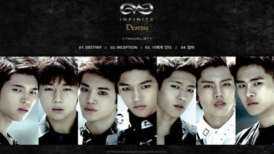 INFINITE revealed the track list for their upcoming single album "Destiny", which will be released on July 16, through its official homepage. There are 4 tracks in total, which includes "Destiny", "Inception", "Going To You", and "Mother".