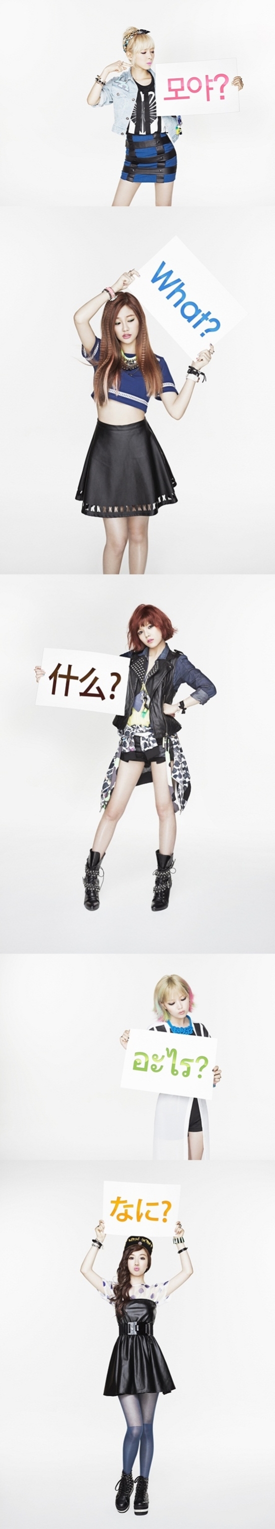 On July 16, a set of photos of the AOA members was posted on AOA's official Facebook. In the photos, AOA's ChoA, JiMin, Yuna, YouKyung, and MinA are asking fans, "What?", in Korean, Chinese, English, Thai, and Japanese, as it is the title of their upcoming album, 'MOYA' (which is 'What' in Korean).