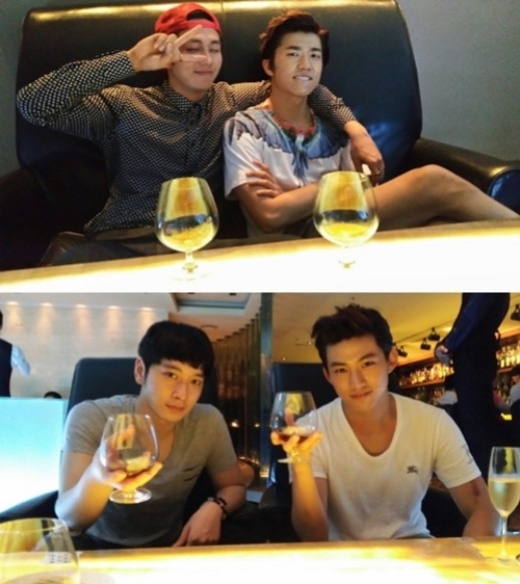 In the photos, Im Seulong put his arm around 2PM Wooyoung's shoulders and making a 'v' pose playfully for photos.