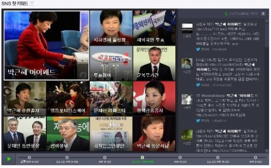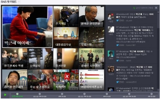 A captured image of Naver's "SNS Hot Keyword" on December 11, 2012 at 9 p.m.. |