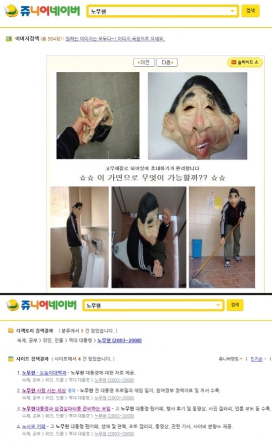 Images making fun of the late former President Roh Moo-Hyun in a search results page have been deleted. |