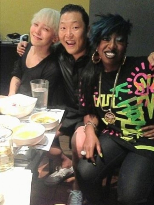 On August 26, Psy uploaded a photo on his Instagram and wrote, "With Missy Elliot and G-Dragon".