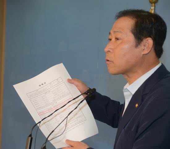 On August 23, Saenuri Party congressman Lee No-Geun attended a press conference and claimed that independent lawmaker Rep. Ahn Cheol-Soo's career as a dean of Danguk University school of medicine is false, at the National Assembly building in Seoul. |